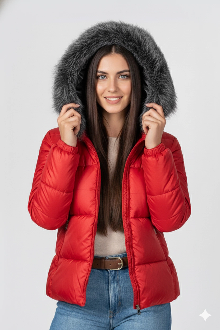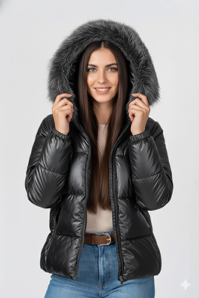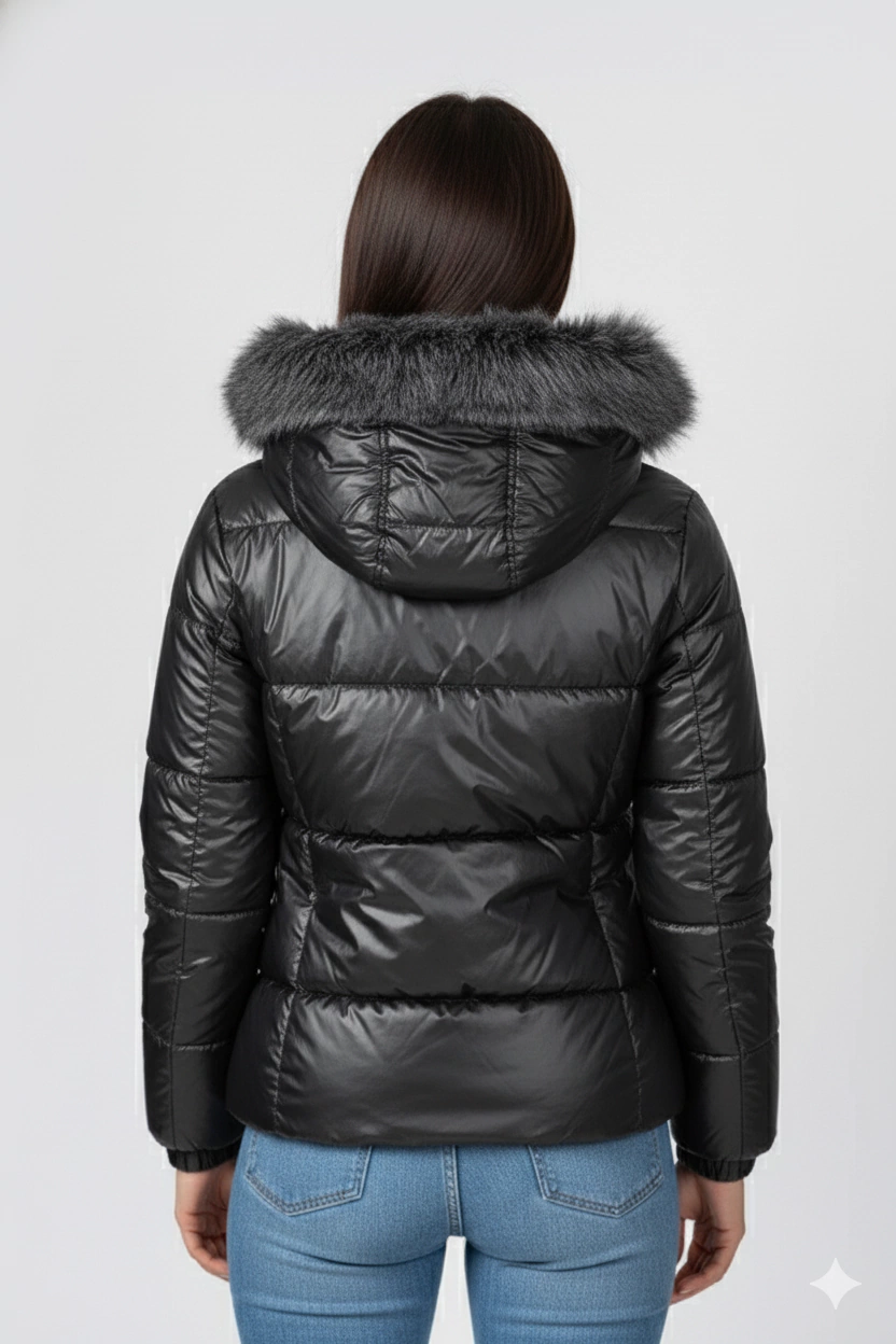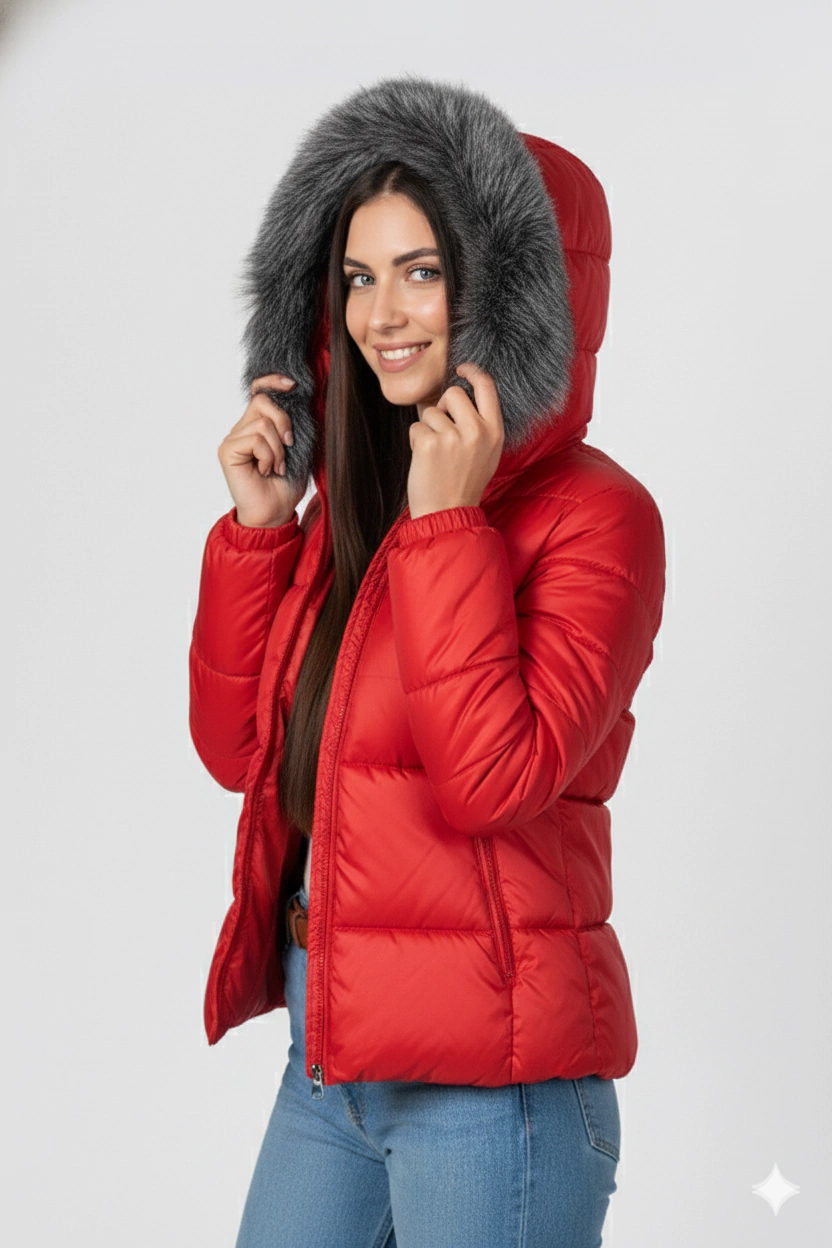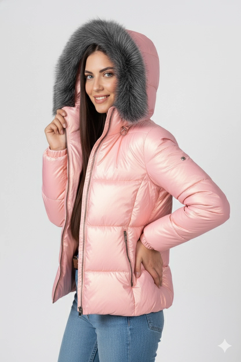 El modelo ETHEL combina estilo y confort con su diseño ultra liviano y material térmico que te mantendrá abrigada. Cuenta con un moderno matelasseado y una capucha con detalle de piel sintética.