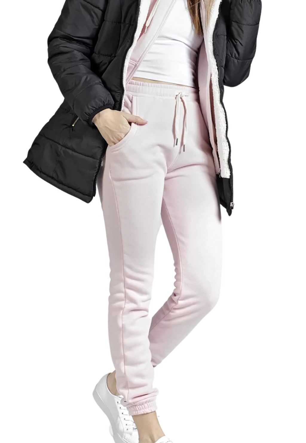 Jogging femenino LARA elaborado en algodón de friza con tiro medio y bolsillos externos. Posee cordón regulador a la altura de la cintura y puños por encima de los tobillos.