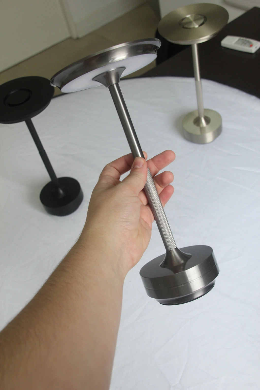 Lámpara portátil e inalámbrica de diseño moderno, ideal para sumar iluminación funcional y decorativa en interiores. Perfecta para escritorios, mesas de luz, mesas auxiliares, restaurantes y hoteles. Brinda una luz confortable, elegante y sin cables.