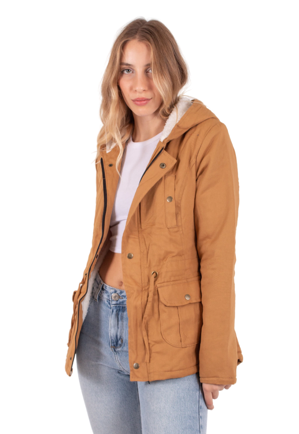 Parka De gabardina con bolsillos y capucha, muy practica!