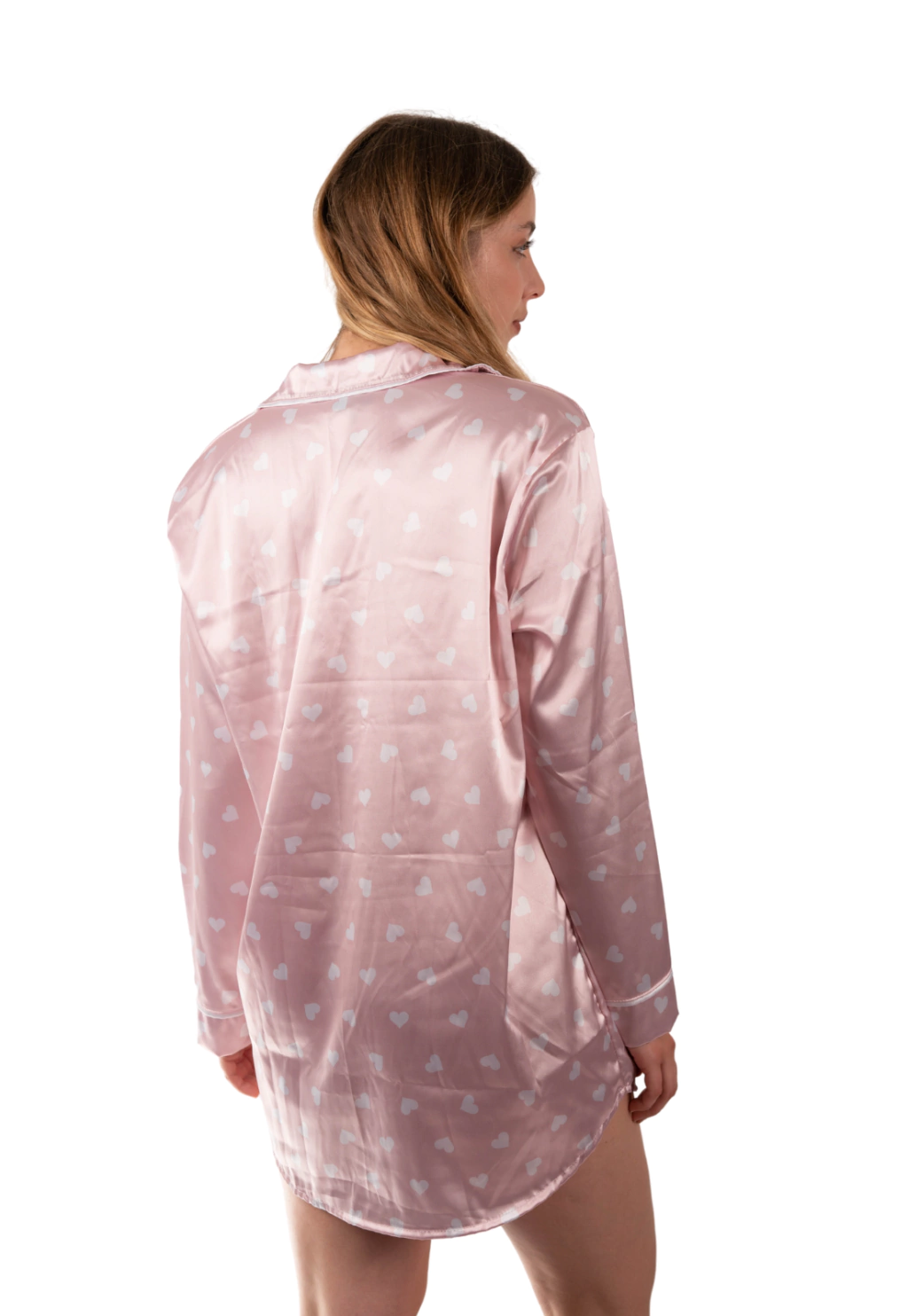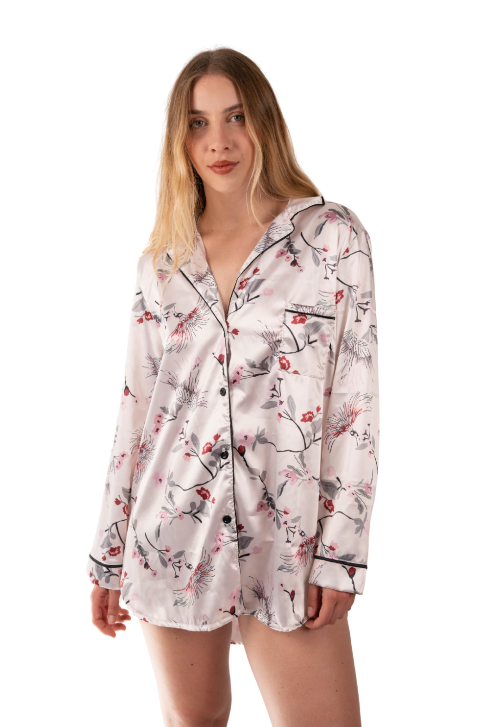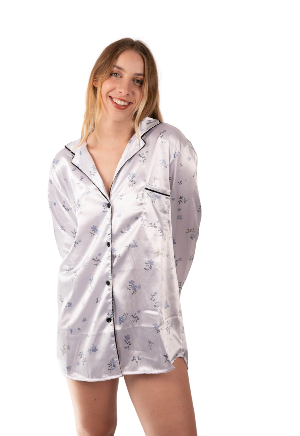 Pijama de mujer confeccionado en saten. Es estilo camisero.