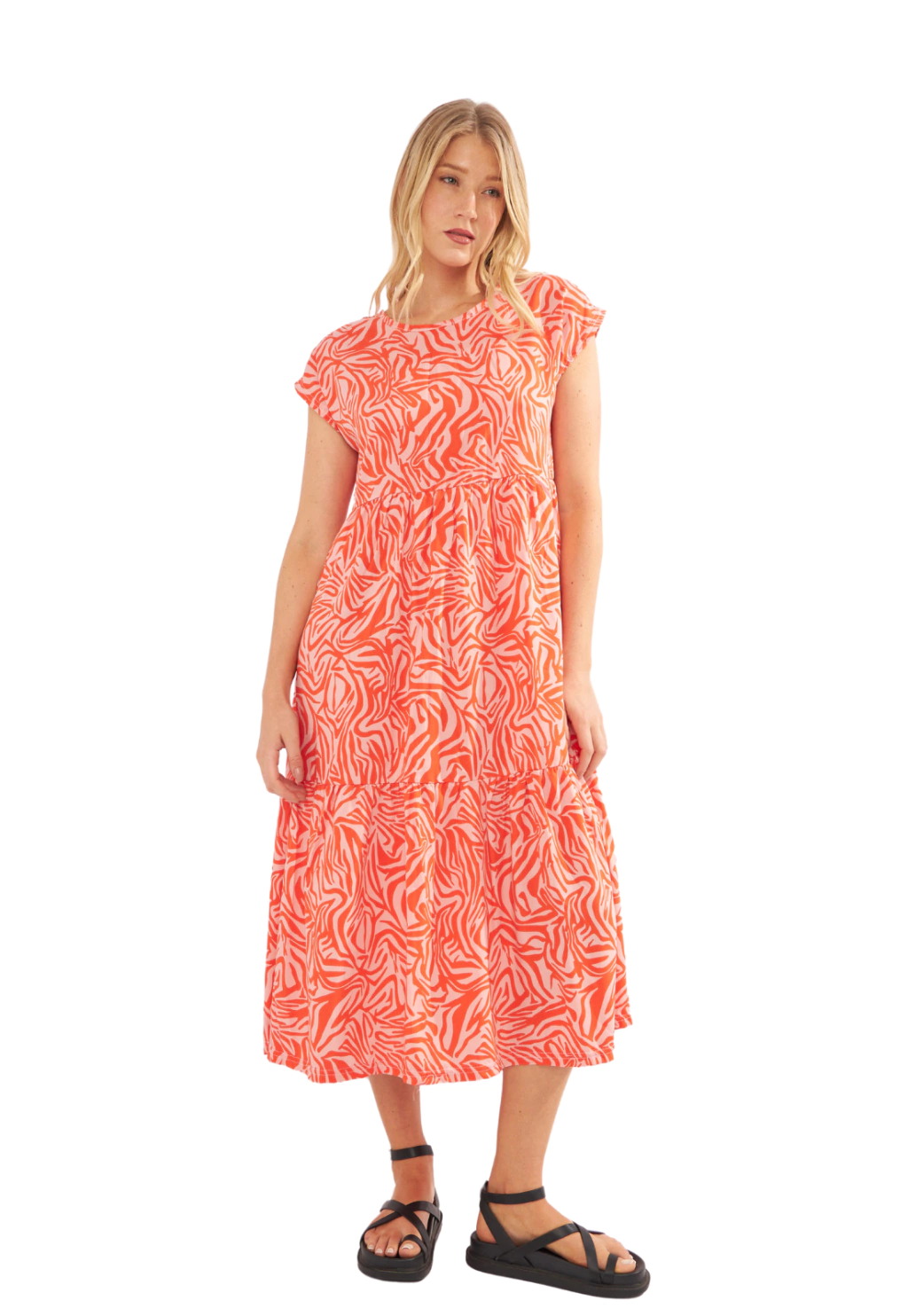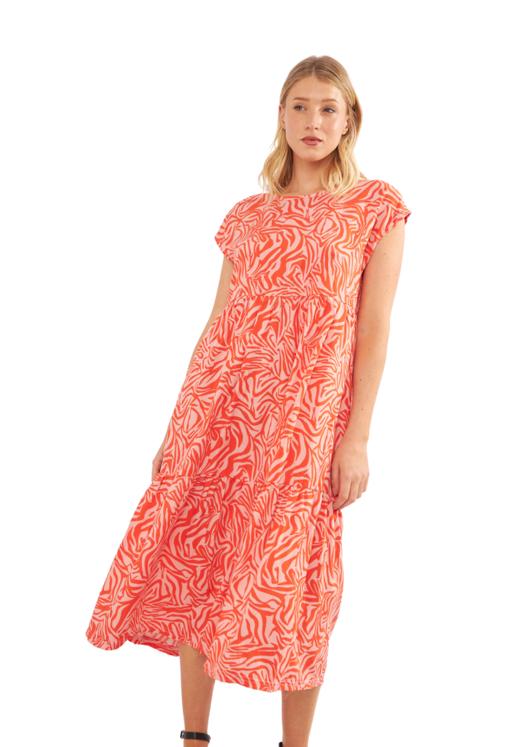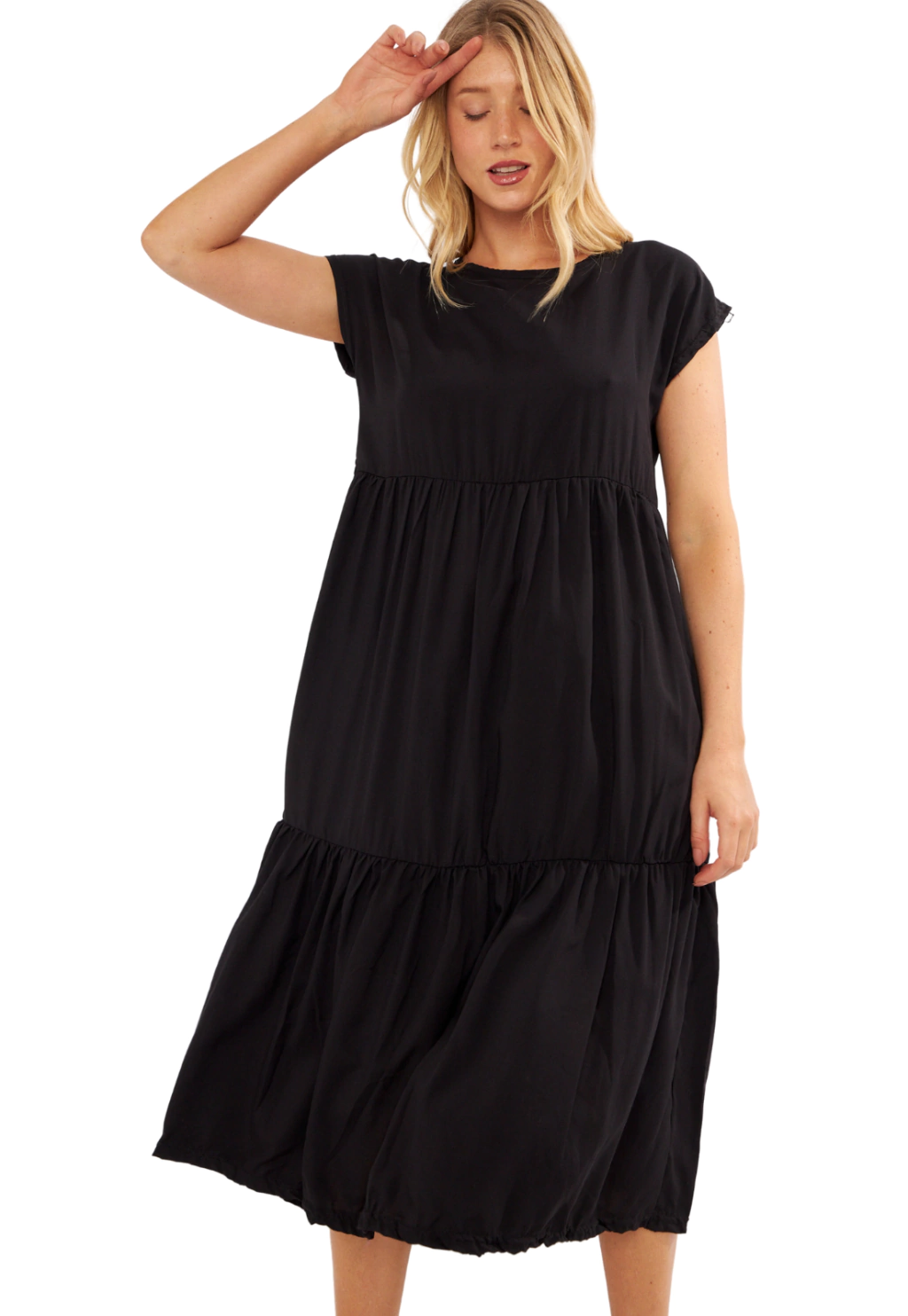 ¡Elegante vestido midi de fibrana! Su diseño de falda escalonada añade un toque femenino y favorecedor a su silueta fluida y cómoda. Perfecto para cualquier ocasión.