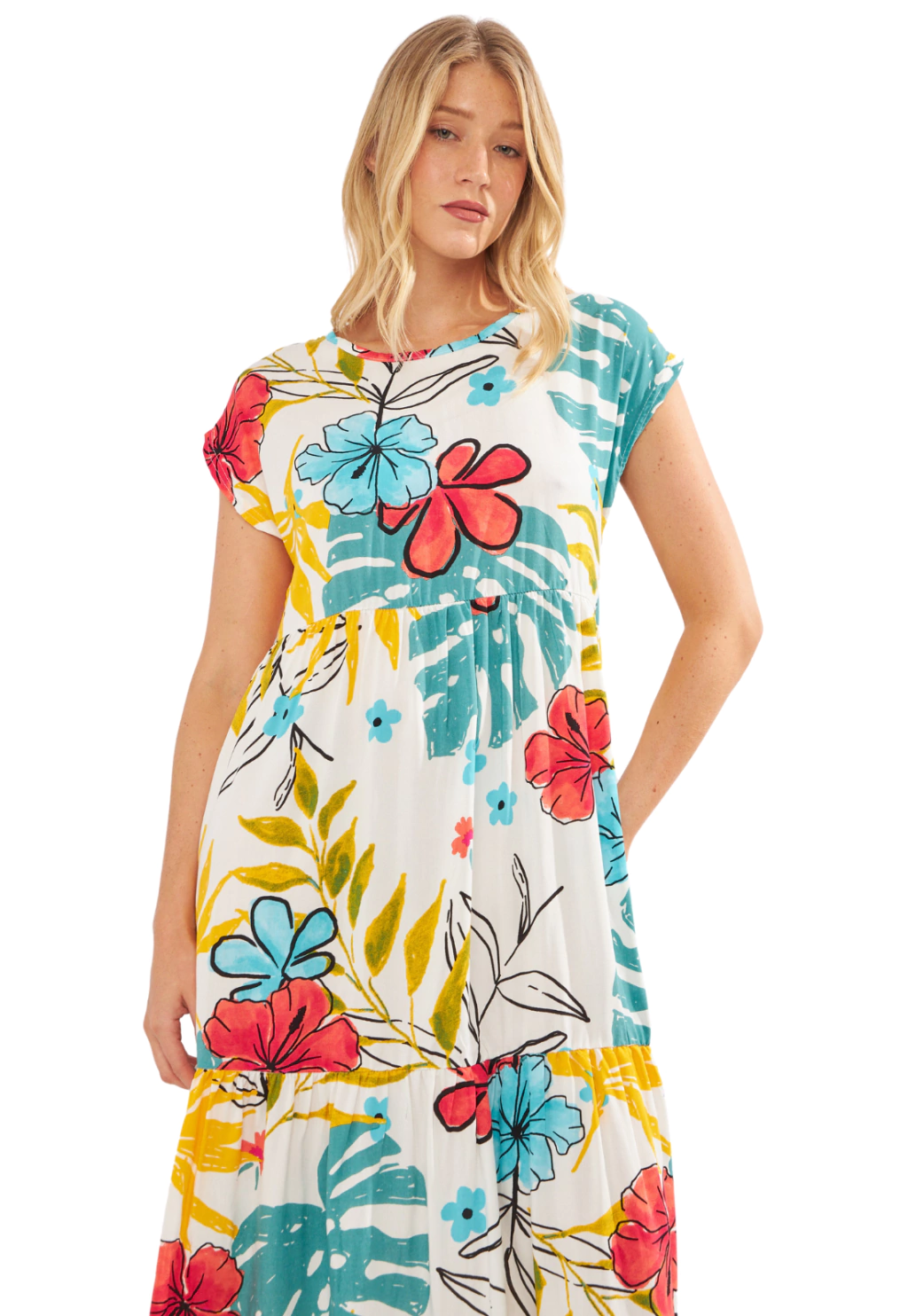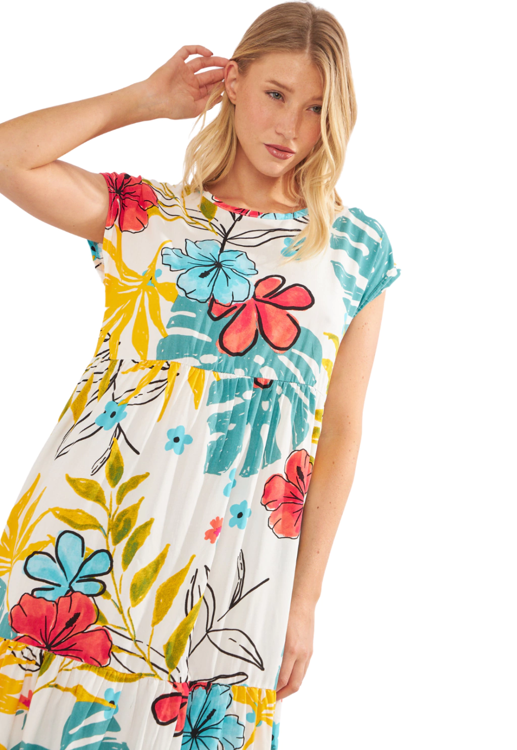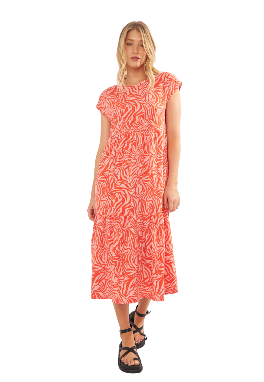 ¡Elegante vestido midi de fibrana! Su diseño de falda escalonada añade un toque femenino y favorecedor a su silueta fluida y cómoda. Perfecto para cualquier ocasión.