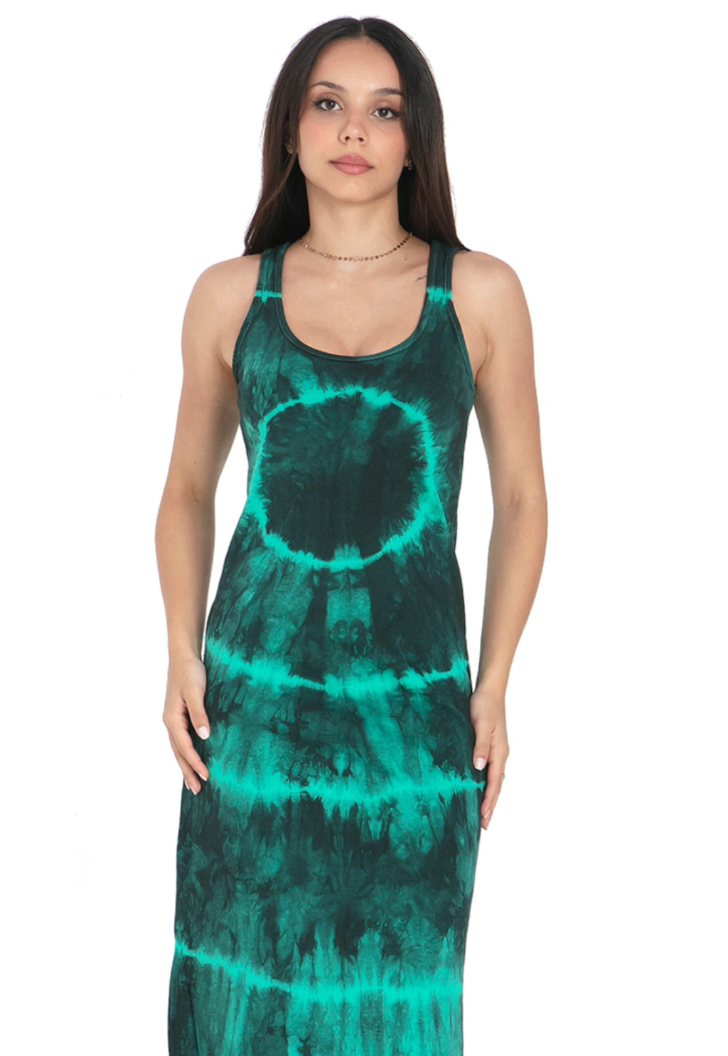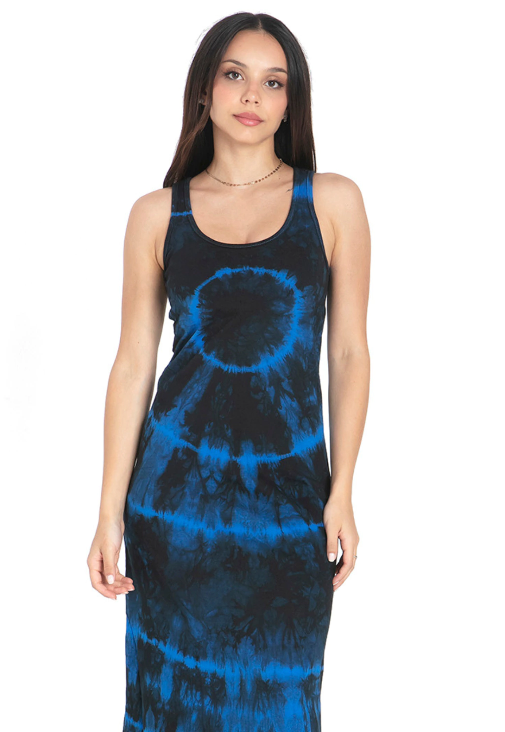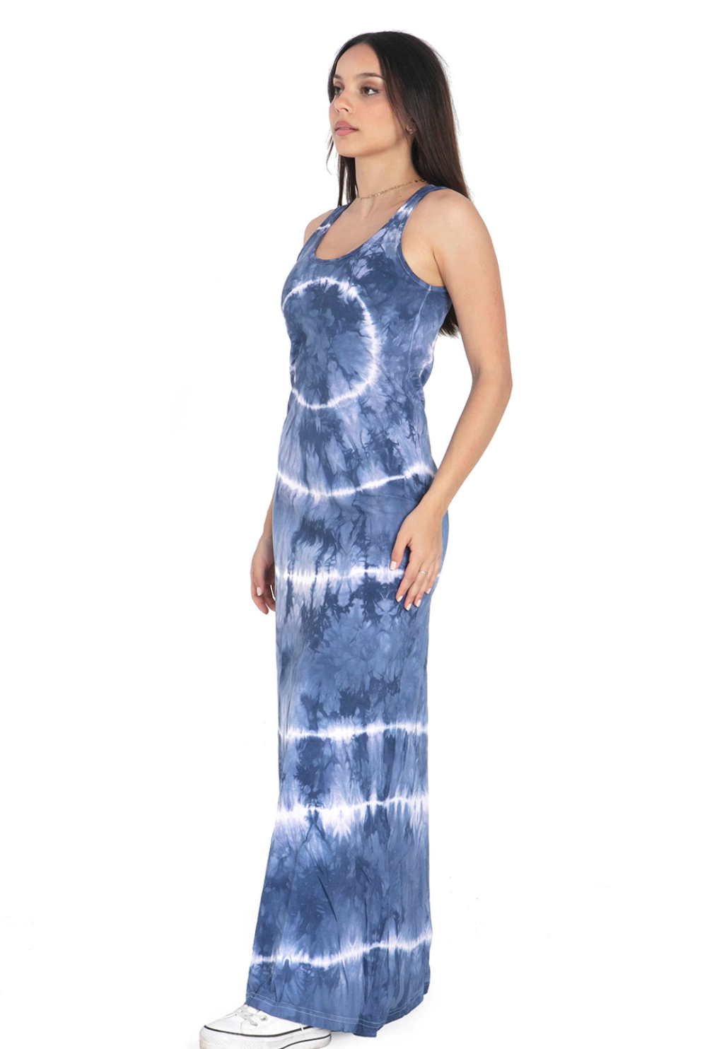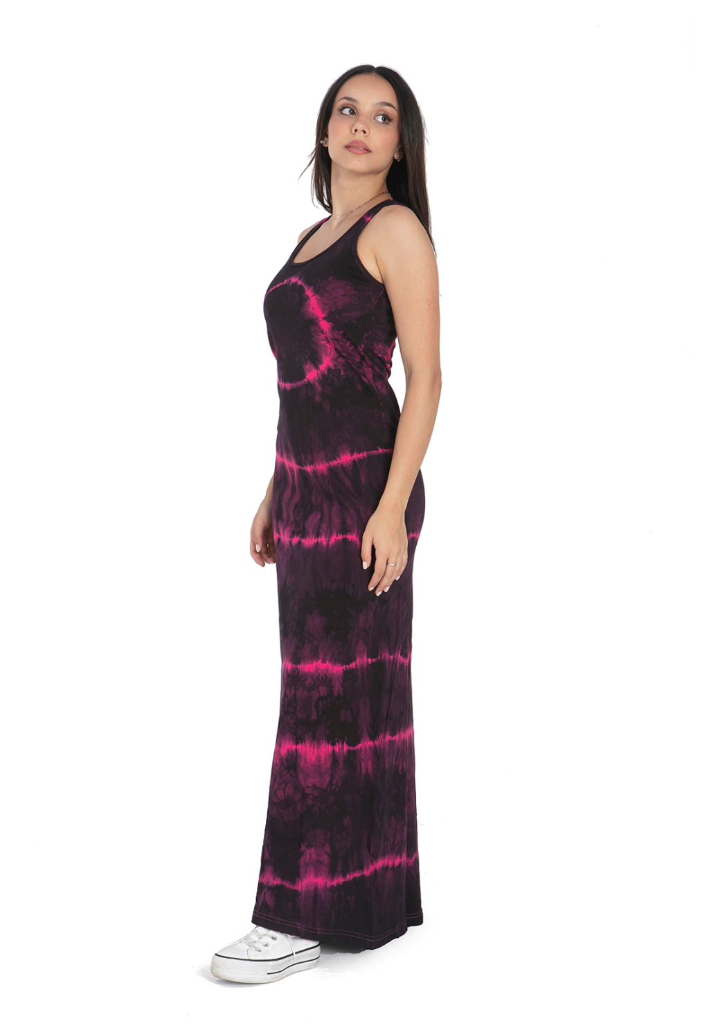 Es un vestido de algodón. Cuenta con escote redondo y breteles gruesos. También, cuenta con bolsillos, lo que lo hace muy canchero. El diseño de la tela es batik.