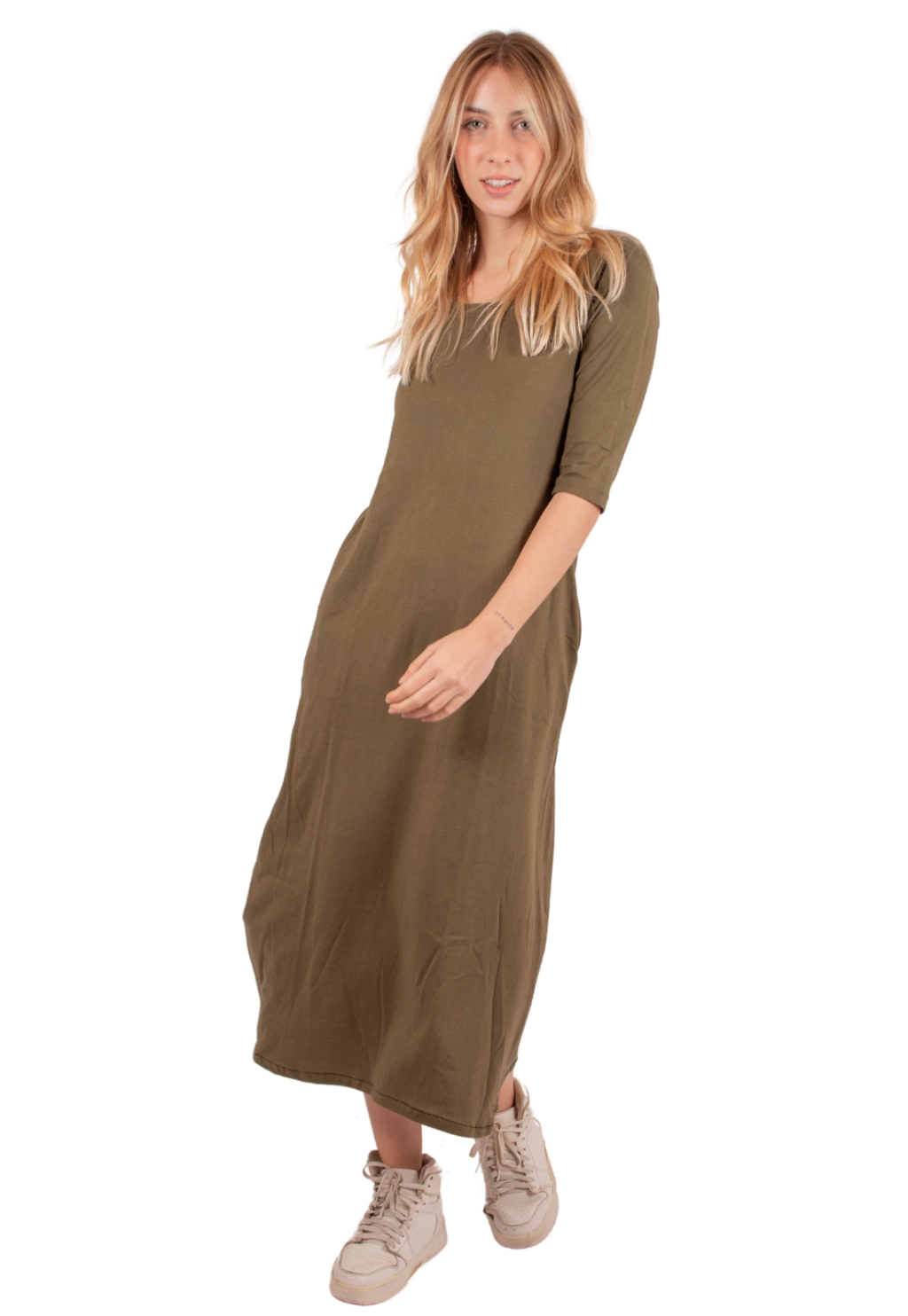 Vestido con bolsillos laterales. Nivel de elasticidad: Elastiza un par de centímetros ;) Composición 100% algodón
