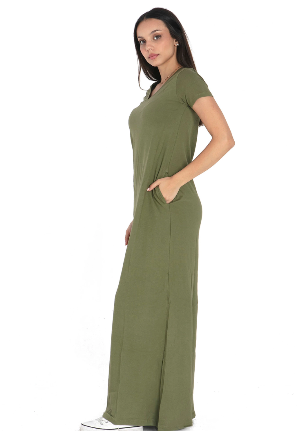 Vestido largo de mujer. Cuenta con bolsillos lo que lo hace muy canchero. Esta confeccionado con algodón.